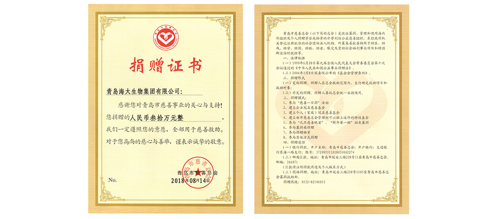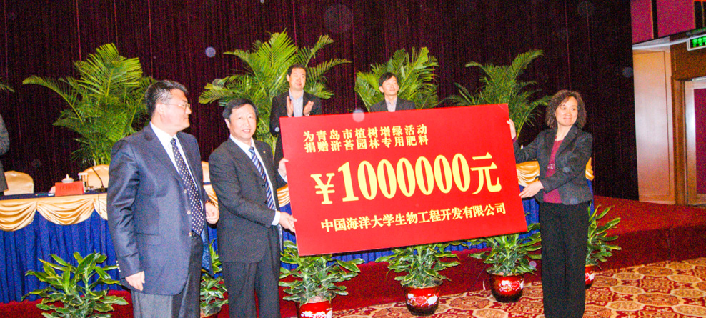 向青岛世园会及市区园林绿化捐赠大量海藻有机肥,共建宜居城市。