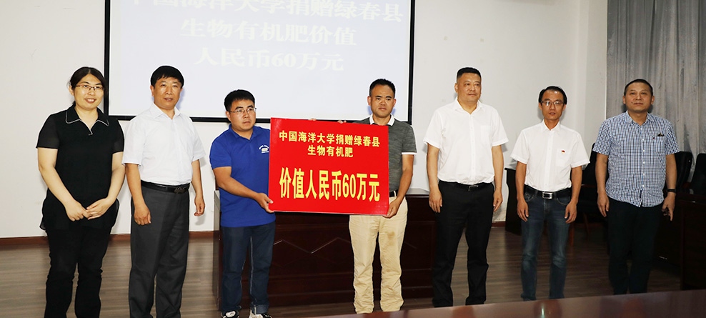 代表中国海洋大学捐赠给云南绿春县价值60万元的生物有机肥。