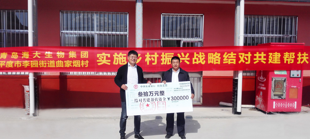 积极响应国家乡村振兴战略,为平度曲家烟村捐赠100万元。