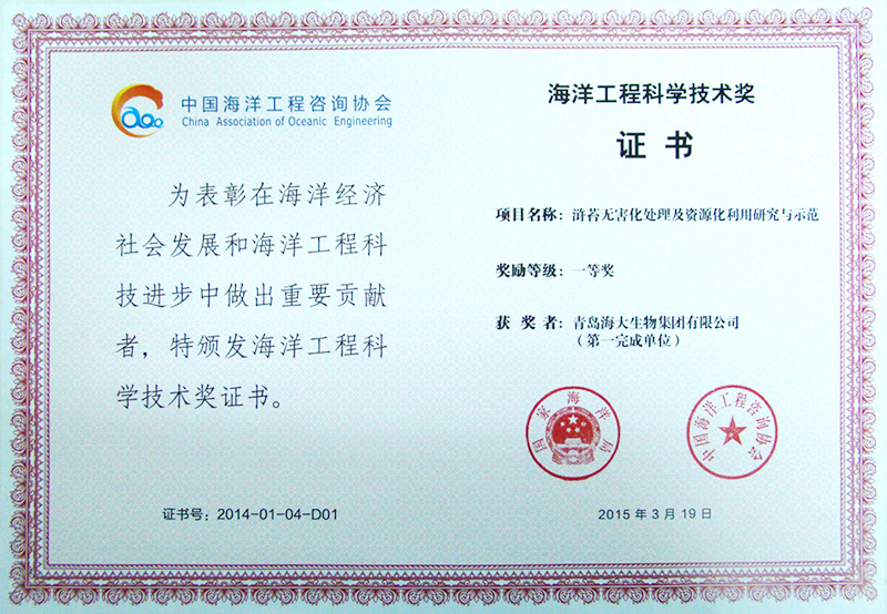 经过20多年发展,以褐藻和绿藻为原料的双藻源生物刺激素、壳寡糖、鱼蛋白肽等功能海洋生物制品、新型海洋生物肥料产品的技术水平和产销规模已处于行业前列。